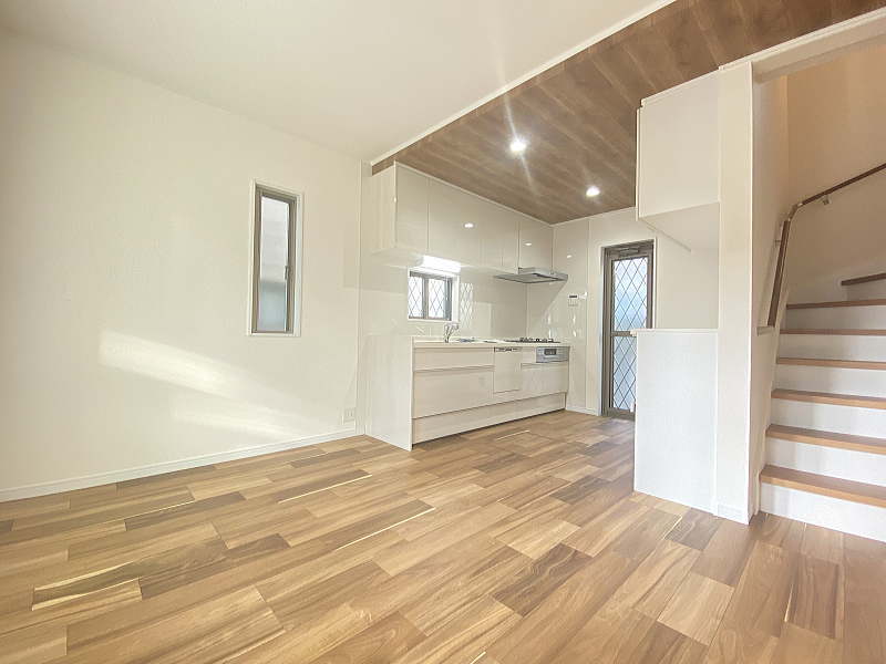 屋上庭園は、日当たり良好! 水道、電気コンセントも設置!思い思いにお楽しみください。LDKは、折り上げ天井で開放感を演出しました。 2Fのフリースペースは、趣味やテレワーク等。 工夫してお使いください♪