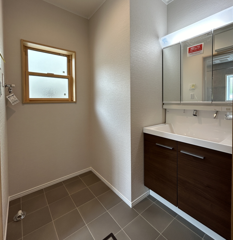 省エネ/断熱等級5・一次エネルギー消費量等級6 樹脂複合サッシ+Low-Eガラス 耐震・耐久/構造用ハイベストウッド全面張り 基礎立上り巾150 防犯/1F防犯ガラスOR面格子ORシャッター スマートキー(スマートフォン対応) 生活・家事応援/浴室換気乾燥暖房機・床暖房・食器洗浄乾燥機・家電収納付カップボー